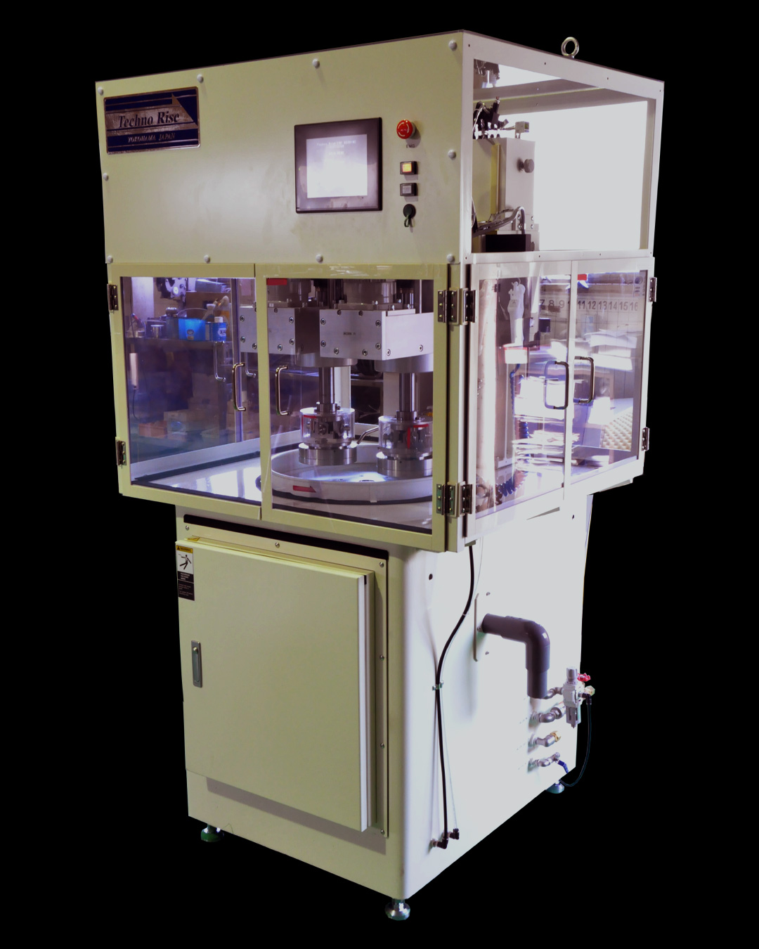 強制ドライブ機構、循環冷却水機構などさまざまな機構を搭載し、高精度の加圧コントロール機構を備えたセミオートCMP装置です。