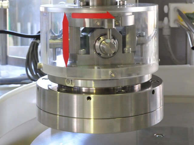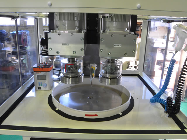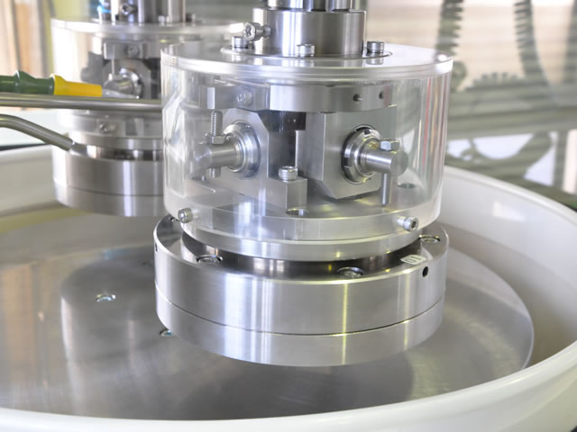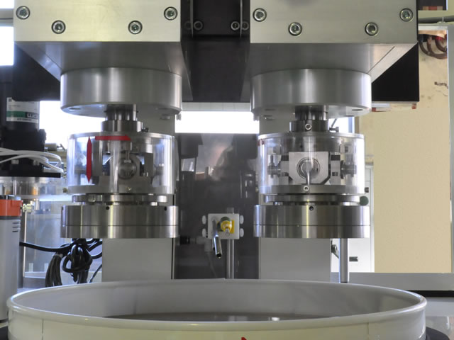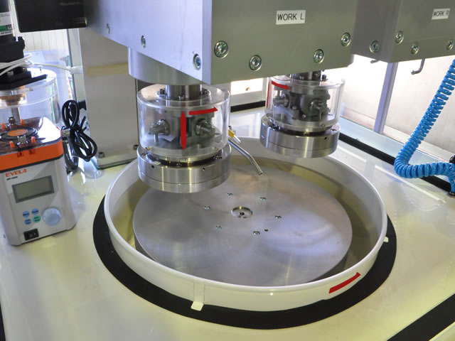 2軸ポリッシングヘッドと半導体デバイス等で用いられるCMP機構を併せ持った装置です。