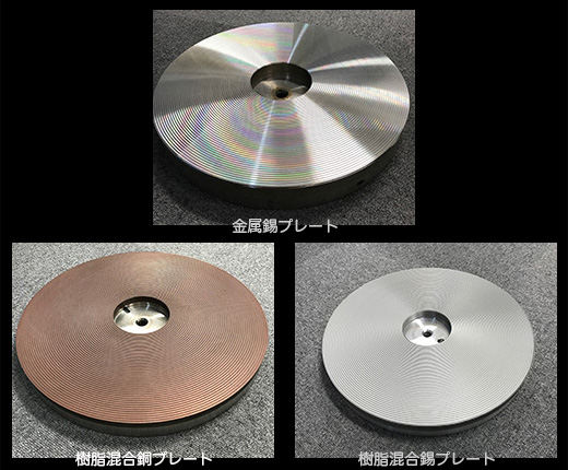 主にダイヤモンド砥粒で金属プレート、樹脂混合プレートとGCアルミナ等の砥粒で用いられる鋳鉄プレート、ガラスプレート等、様々な被研磨材(ワーク)にあわせたプレートを提案いたします。